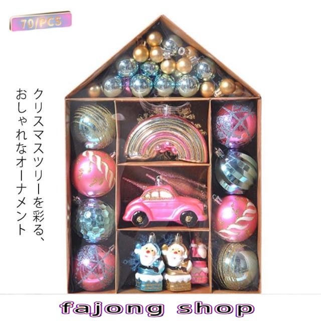 ■飾り オーナメント クリスマスツリー 70個セット サンタクロース おしゃれ クリスマス アソート 雪ダルマ スノーフレーク クリスマスキャ