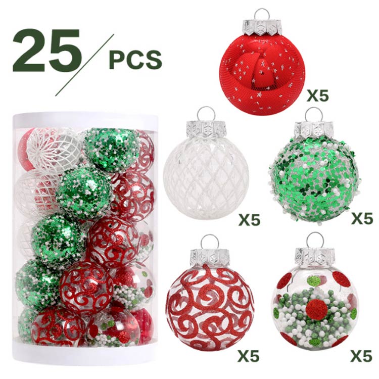 ■クリスマスツリー オーナメント 飾り セットクリスマス 北欧 おしゃれ 6cm/25pcs PET 透明 クリア レット グリーン ゴールド シルバー ホ