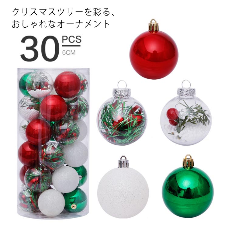■クリスマスツリー オーナメント クリスマス クリスマスツリー オーナメントセット 飾り 6cm/30pcs レット グリーン ホワイト クリア 透明
