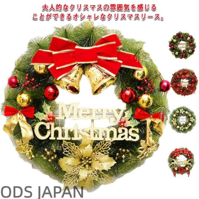 ■クリスマスリース アートフラワーリース 玄関 部屋 クリスマス リース ドア 壁掛け ディスプレイ 造花 インテリア ゴールド 金 飾り 装飾
