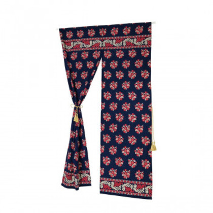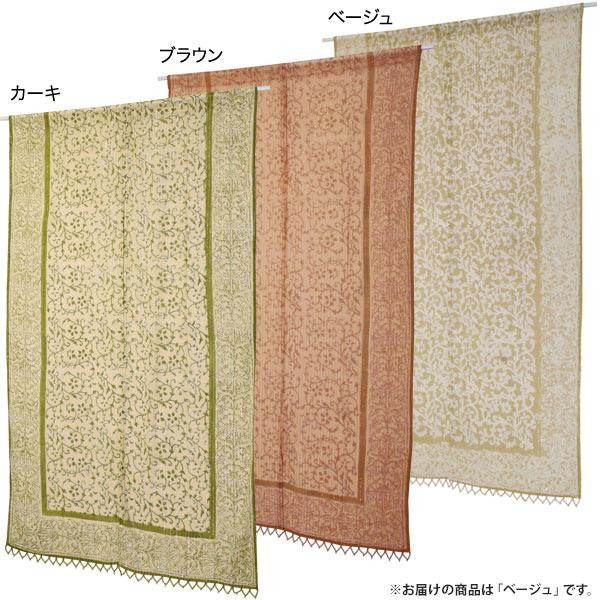 淡いボタニカル柄のブロックプリントののれんです。裾にはキュートなビーズ飾りが揺れています。 生産国:インド 素材・材質:綿70%、シルク30% 商品サイズ:約85×150cm