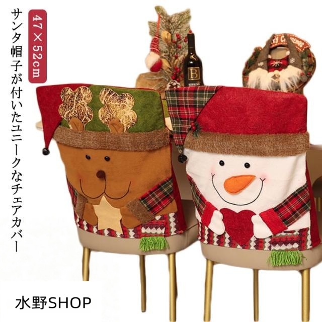 ■チェアカバー クリスマス サンタ帽子付き 47×52cm インテリア クリスマス飾り ホームデコレーション 背もたれ かわいい おしゃれ 冬の装