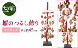 女子の健やかな成長を願う母の祈りよ届け。七戸から雛のつるし飾りをお送りします。高さ約45cmの小型の台にミニサイズのかわいい雛飾りをつるしています。男雛・女雛・3人官女を模り小さくふっくらとまとめました。ひな祭りの雰囲気が十分に味わえる人気の品です。 高さ:約45cm飾り18個+ミニ羽子板化繊・木綿・正絹使用