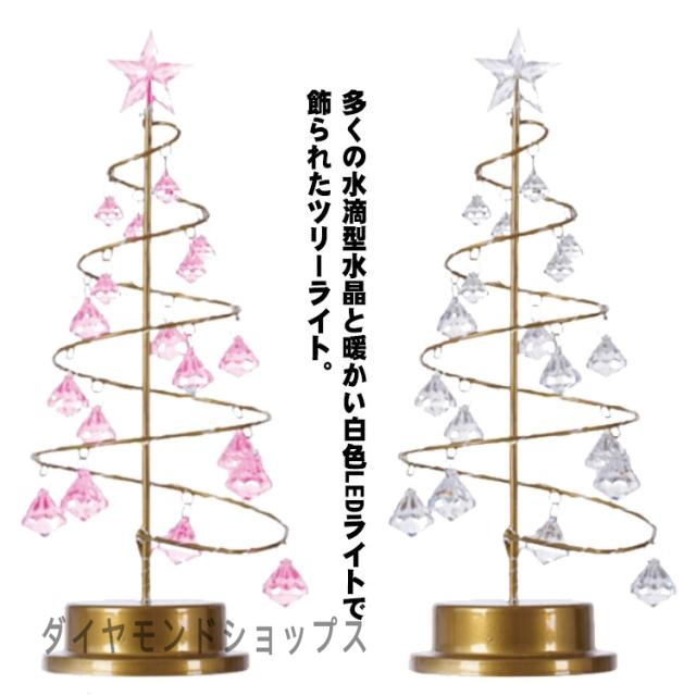 ■クリスマスツリー ライト LEDイルミネーションライト クリア 卓上 水晶 ミニツリー 33cm 卓上ツリー クリスマス飾り 電池式 Christmas 装