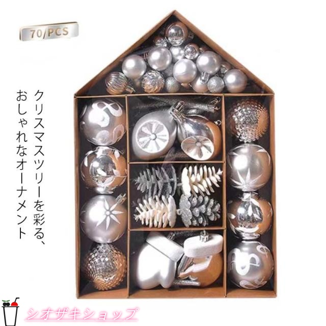 ■おしゃれ 70個セット オーナメント セット ボール おしゃれ アソート 飾り 雪ダルマ スノーフレーク クリスマスツリー トナカイ クリスマ