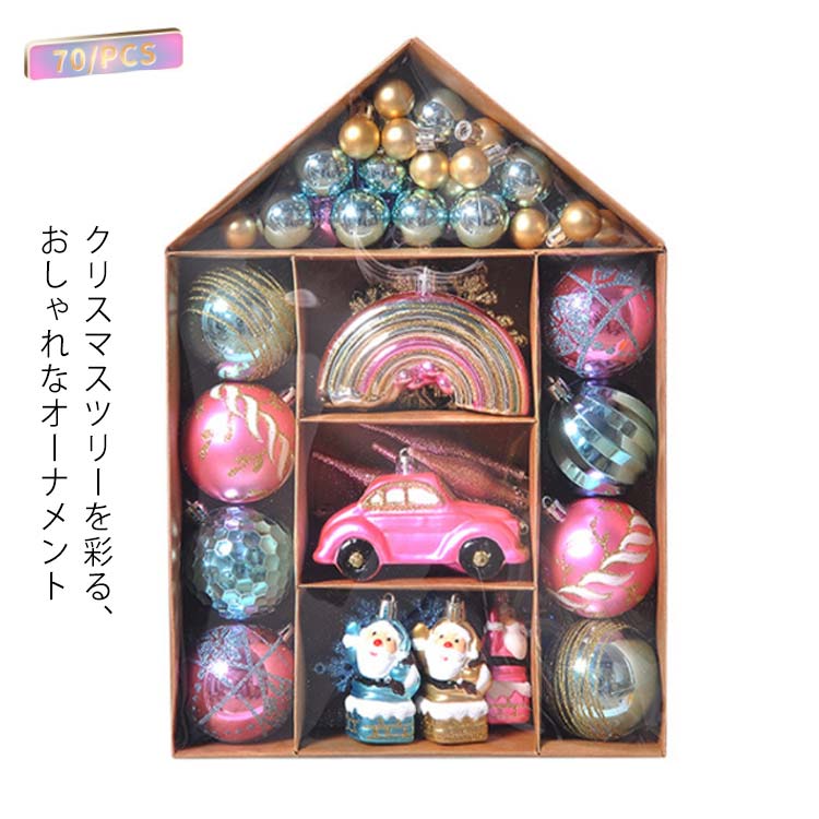 おしゃれ 70個セット オーナメント セット ボール おしゃれ アソート 飾り 雪ダルマ スノーフレーク クリスマスツリー トナカイ クリスマスキャンディー シェル クリスマス ゴールド サンタクロース