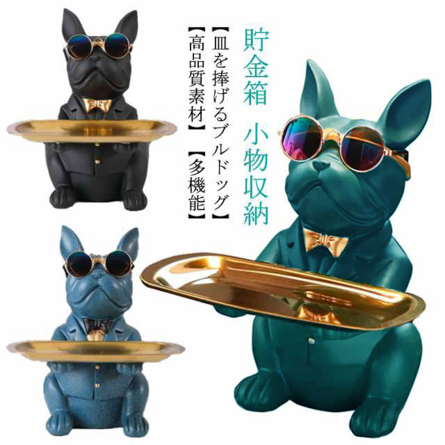 ■3in1 皿を捧げる犬さん キー収納トレイ 貯金箱 小物収納 玄関 小銭ボックス 鍵置き 飾り インテリア 樹脂製 ステンレス鋼の皿 置物