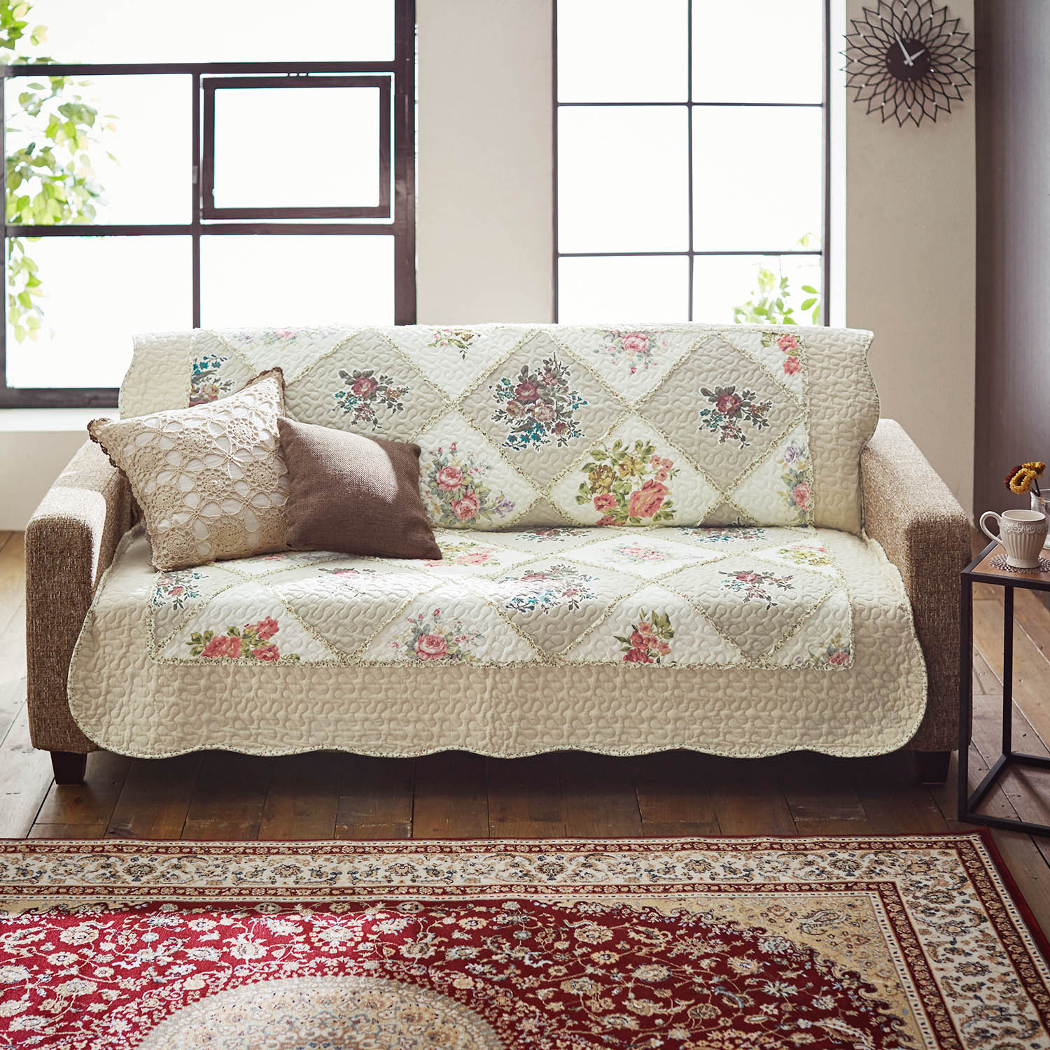 ■【ベルメゾン】側地綿素材を使ったキルトマルチカバー・ソファーカバー