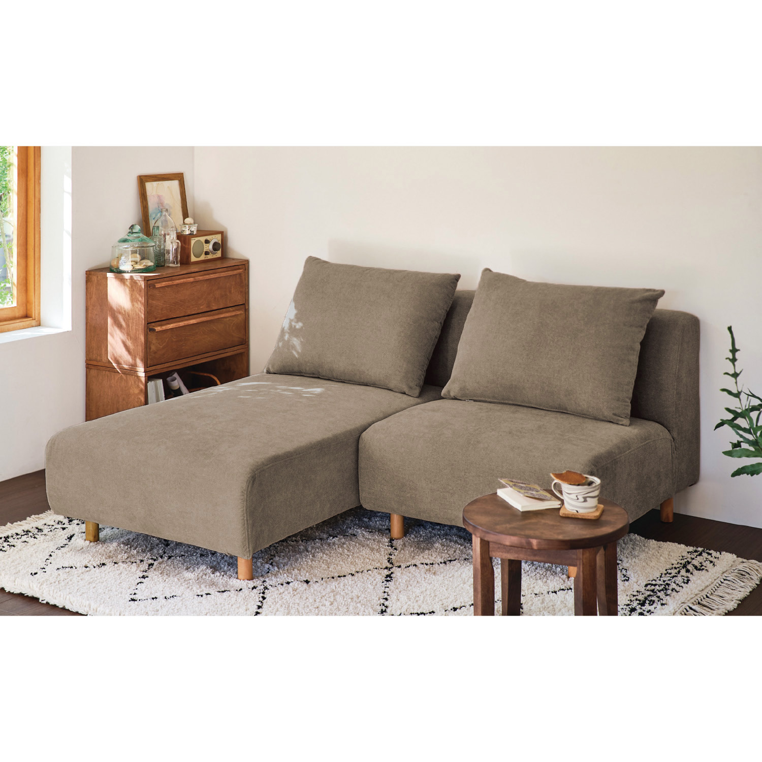 広めの座面でゆったりくつろげるカウチソファーナチュラルな細めの丸脚で、見た目もすっきり簡単に連結できるので、空間に合わせて配置OKウレタン入りで、しっかりと弾力のある座り心地ほんのり起毛していて肌ざわりの良い杢調の側地汚れたら手軽に洗えるカバーリングタイプごろ寝時は枕としても使えるクッション付き#一人用ソファー