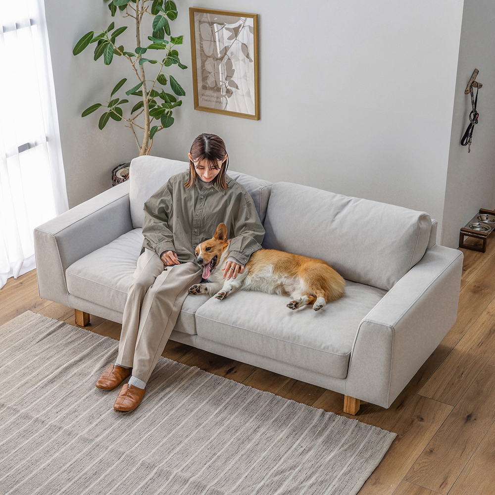 ペットが上がり下がりしやすいようシート高はあえて低めにし、負担軽減を考えた設計にしました座面奥行が56cmあるので、あぐらをかいたりごろ寝に最適脚高は13cmあるのでお掃除ロボットが使えます脚部には贅沢にアッシュ材無垢材を使用。ソファーとしてのクオリティにもこだわりましたフルカバーリングなので全パーツのカバーを取り外してご自宅で洗えますペットトラブルに対応した生地を使用しています 【摩擦に強い】 ペットが身体を擦りつけても破れにくい生地なので、日常的な仕様はもちろん、ペットがソファでくつろぐ際にも快適です 【毛が取れやすい】 ペットの抜け毛が取り除きやすく、汚れも染み込みにくいのでお手入れが簡単です 【引き裂きや引っ張りに強い】 ペットが引っ張っても生地が崩れにくく、美しさを保ちます 【自宅でお洗濯(手洗い)OK!】 カバーを取り外してご自宅でお洗濯が可能です※手洗い推奨【PETTO(ペット)】「ペットご飼い主が一緒に楽しめ・使える。」双方の気持ちに寄り添ったペット専用品ブランドです。お部屋にマッチするデザインで、ユーモアを少しだけプラスした製品を企画・開発しています。