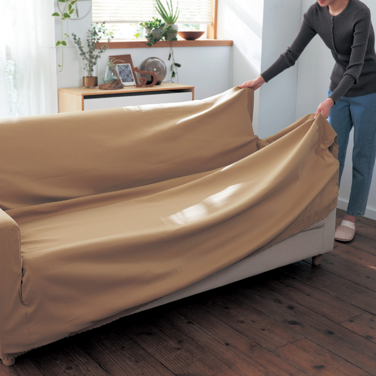 ー機能ーソファーの汚れ防止になるソファーカバーソファーにすっぽり被せるだけの一体型汚れが気になりはじめたソファーも、まるで側地を張り替えたような見映えに水をはじいて汚れが落ちやすい撥水 & 防汚加工付き小さな子どもやペットのいるご家庭にもおすすめ表面がフラットな織りだから爪などが引っかかりにくく、汚れがとれやすい汚れたら丸洗いOKー素材ー厚手でハリのあるチノ風素材丈夫だから長く使える伸縮性があるから着脱がスムーズーデザイン・スタイリングーチノ風素材のナチュラルな風合いは、他の家具とコーディネートしやすい