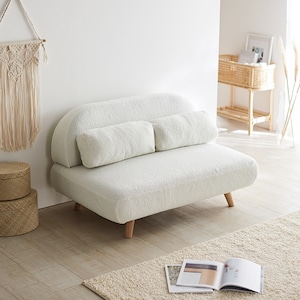 三つ折りマットレスに細長いクッションがくっついたようなユニークな形状折りたたみ方を変えることで、日常使いのソファーから脚をゆったり伸ばすカウチソファー、またベッドとしてなど何通りにも使えるリクライニングソファーベッドです背もたれ部は14段階に細かく調節OK細長いクッション部分はファスナーで簡単に付け外しでき、枕や腰クッション、オットマンなど様々な使い方に対応しますまたカバーリング仕様の張地はクリーニングでき、いつでも清潔に使えるのもうれしいポイントカラーは3色をご用意しました