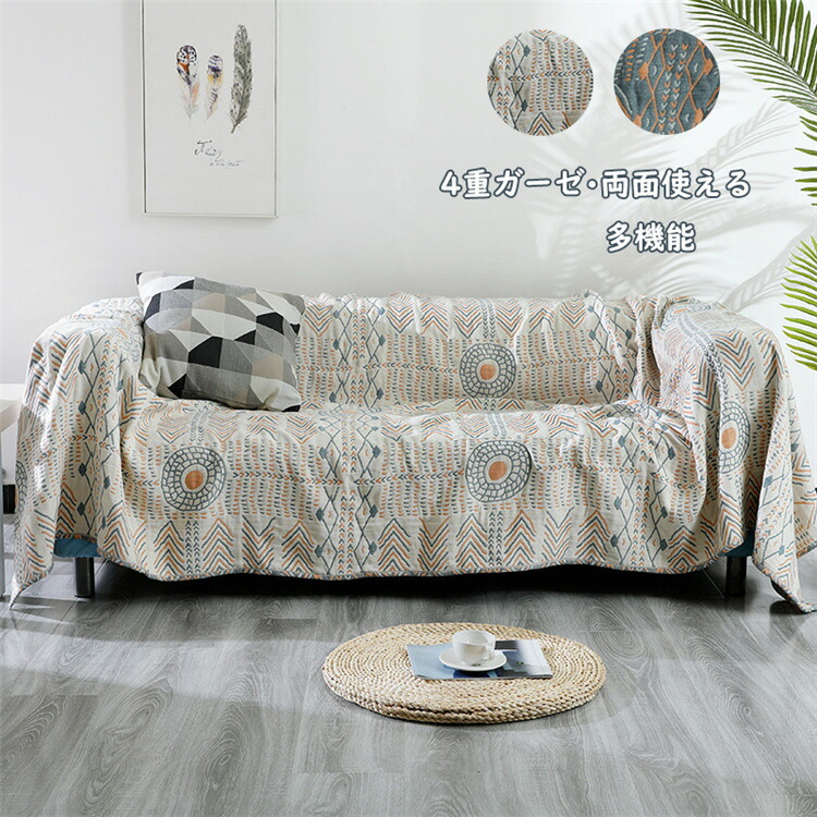 ■両面使える ソファカバー ガーゼケット 4重ガーゼ 北欧 肌掛け 2人掛け 3人掛け 幾何柄 マルチカバー オールインクルーシブ 多機能 布団