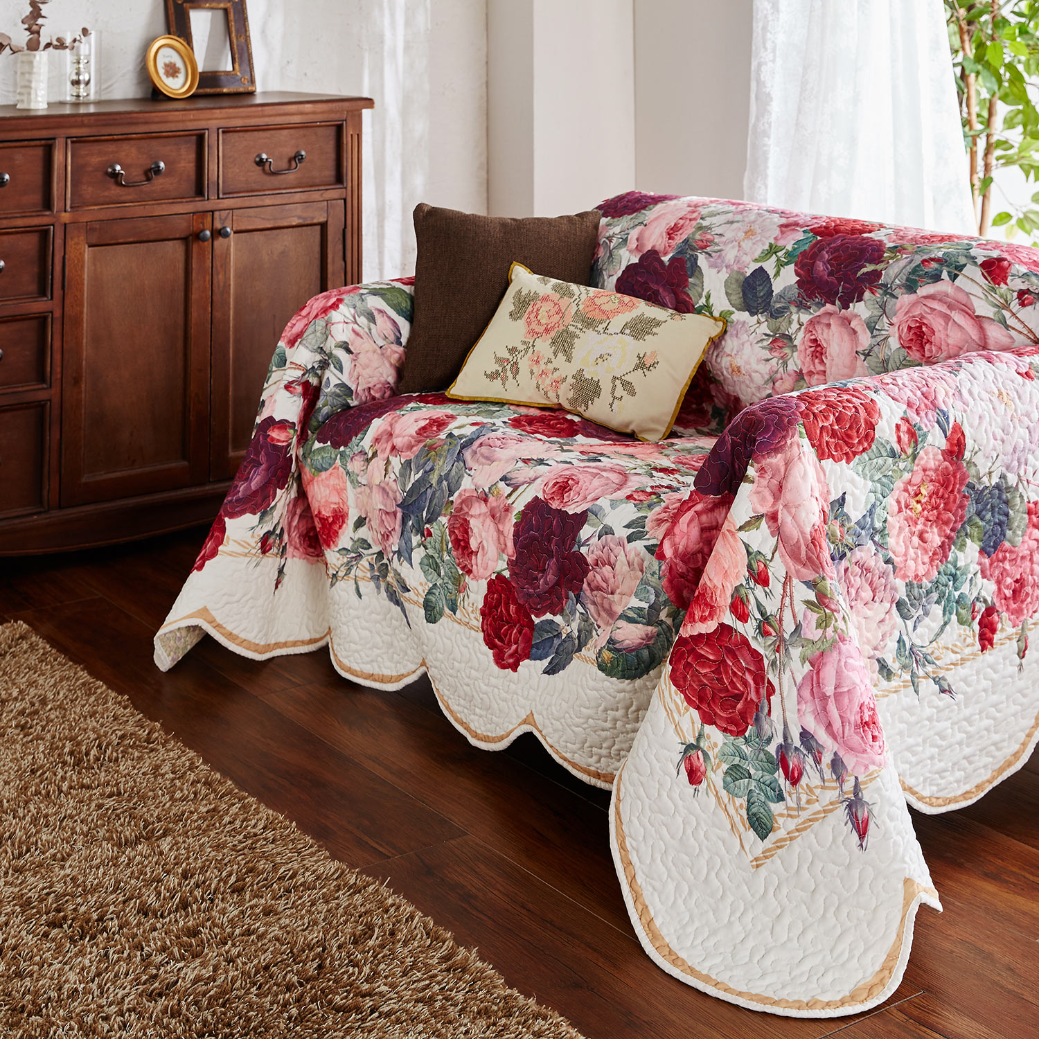 ■【ベルメゾン】画家ルドゥーテのデザインのバラ柄マルチカバー・ソファーカバーB