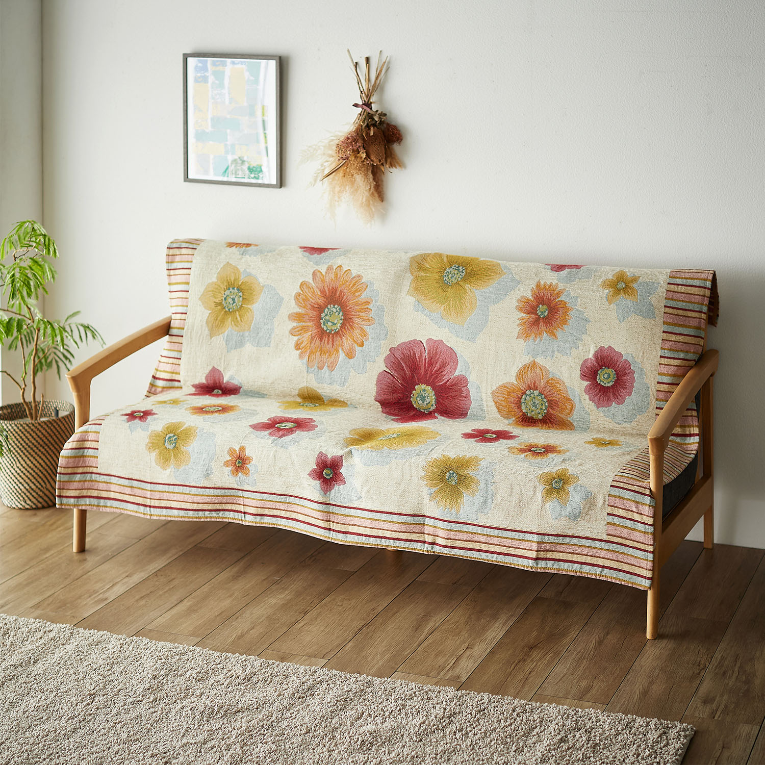 ■【ベルメゾン】フラワー柄のスカラップマルチカバー・ソファーカバー
