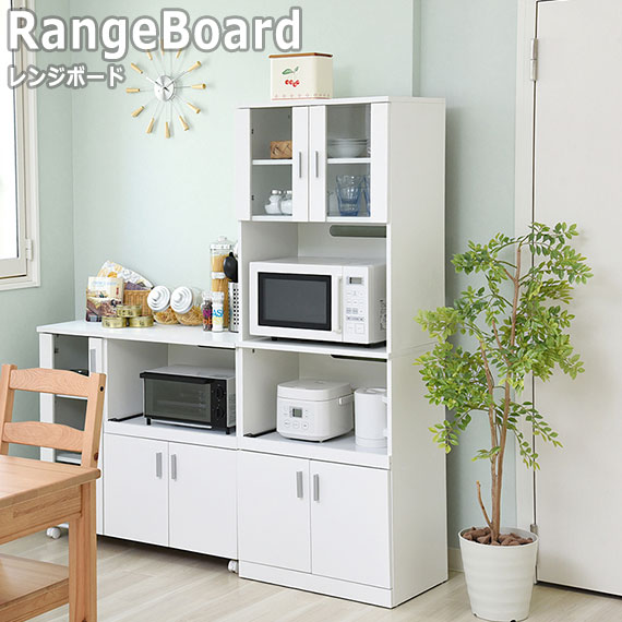 ■SIMシリーズ レンジボード (レンジ台 家電 食器 収納 扉内収納 ガラス扉 強化ガラス 可動棚 PVC加工 スライドレール オープン収納 スラ
