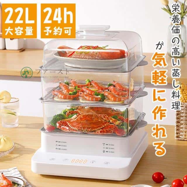 ■蒸し器 電気蒸し器 フードスチーマー スチーマー 蒸し機 3段 24Hタイマー 電動 せいろ 蒸し料理 スチーマー 蒸す 調理 家電 ヘルシー 温