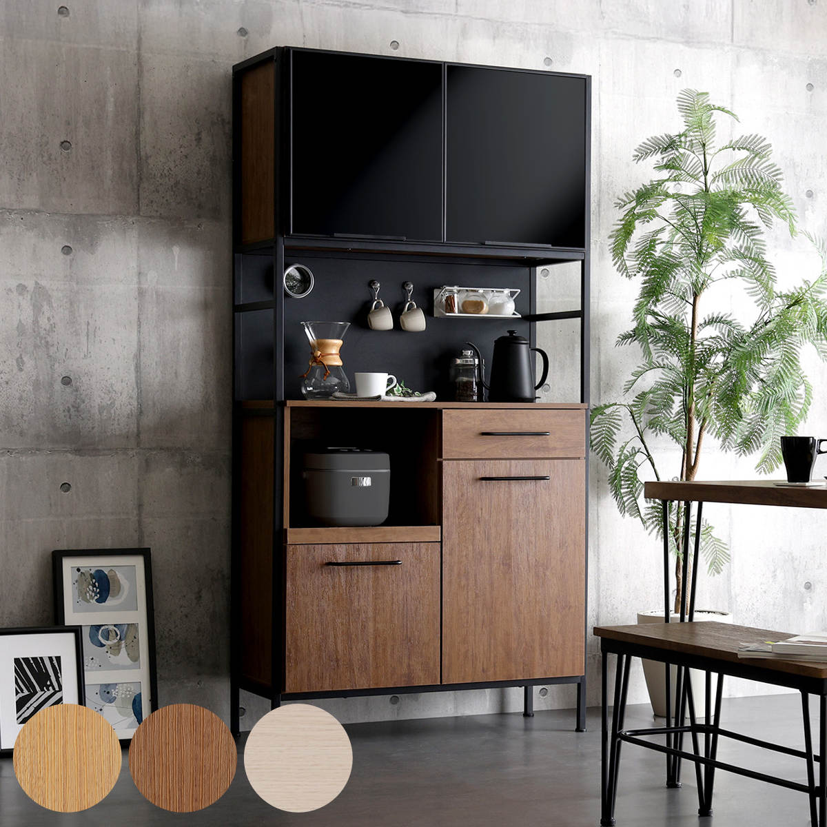 ■食器棚 幅92.7cm マグネット収納 スライド棚 可動棚 ( 木目調 引き出し 家電 食器 キッチン収納 収納棚 引出 カトラリー 木目 マグネッ