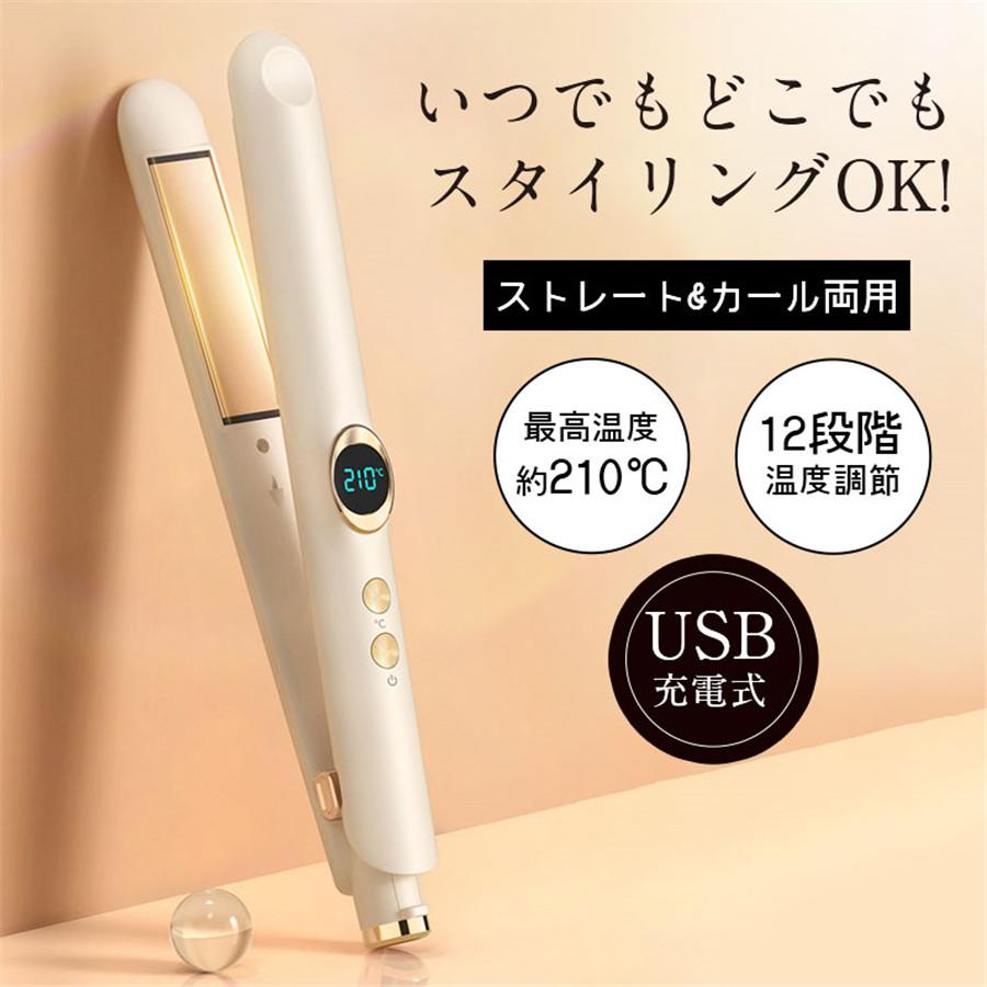 ヘアアイロン コードレス ストレートアイロン 2way 前髪 くせ毛 コンパクト カール USB充電 12段階温度調節 軽量 携帯用 ギフト 家電