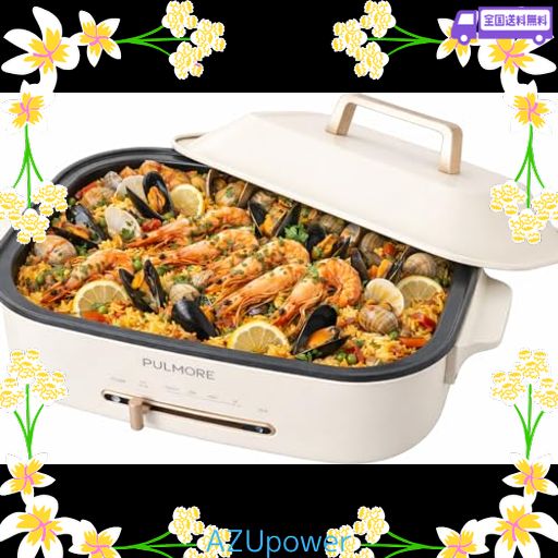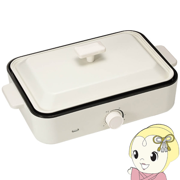 ■PULMORE ホットプレート おしゃれ かわいい 蓋 ふた付き 温度調節 洗いやすい 1人 2人 3人 一人暮らし オーム電機 COK-PYH800-W 08-1461