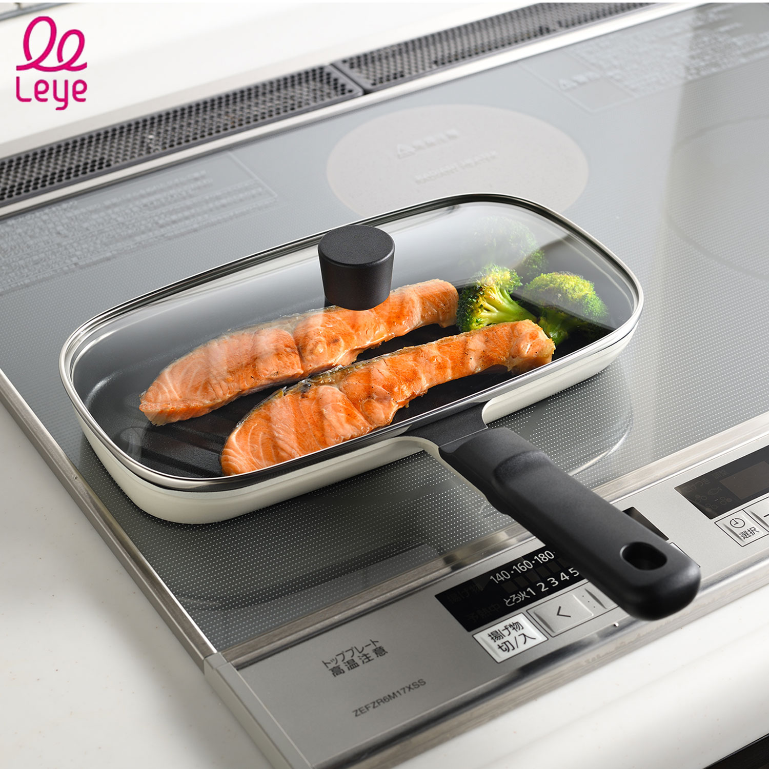 ■Leye レイエ フィッシュロースター おさかなロースター グリルパン コンパクト 軽量 ガス対応 IH対応 丸洗い ガラスフタ付き LES3238