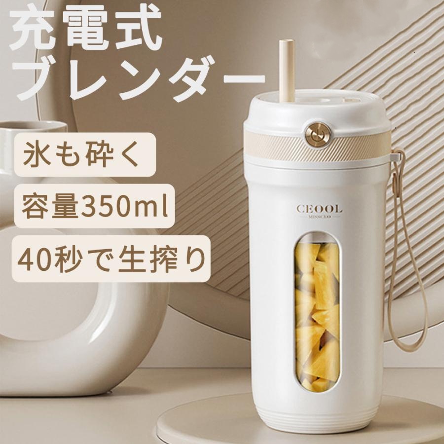 【氷も砕ける小型ミキサー・一台多役】ステンレス鋼10枚刃のブレードの搭載と高速回転により、冷凍フルーツや氷も砕けるパワフルな小型ジューサーで、いつでもどこでも簡単に、フレッシュな味を楽しめます。約40秒でなめらかで美味しいスムージー、ジュース、シェイク、離乳食などの飲み物に変身。 【USB急速充電式・ディスプレで充電残量表示】ミキサーは高級感溢れるLEDディスプレイも搭載、バッテリー残量が一目で確認できるので、突然の電源切れの不安を解消できます。3000m Ah大容量バッテリーが内蔵されており、一回充電すれば約20回使用できます。 【直飲み口・水漏れ防止・持ち運びOK】独自の飲み口設計により、ジュースを注ぎ出す手間を省き、すぐ新鮮なジュースをお楽しみ。そのまま持ち運べる便利な340MLサイズ、コードレスタイプでアウトドアやオフィスやジムなど外出先に携帯したい方にもおすすめです。 【安全素材・二重安全保護機能搭載】BPAを含まない食品級材質で作られており、安全性を確保。樹脂製ボトルを採用、軽くて衝撃に強い、壊れにくいので安心して使えます。