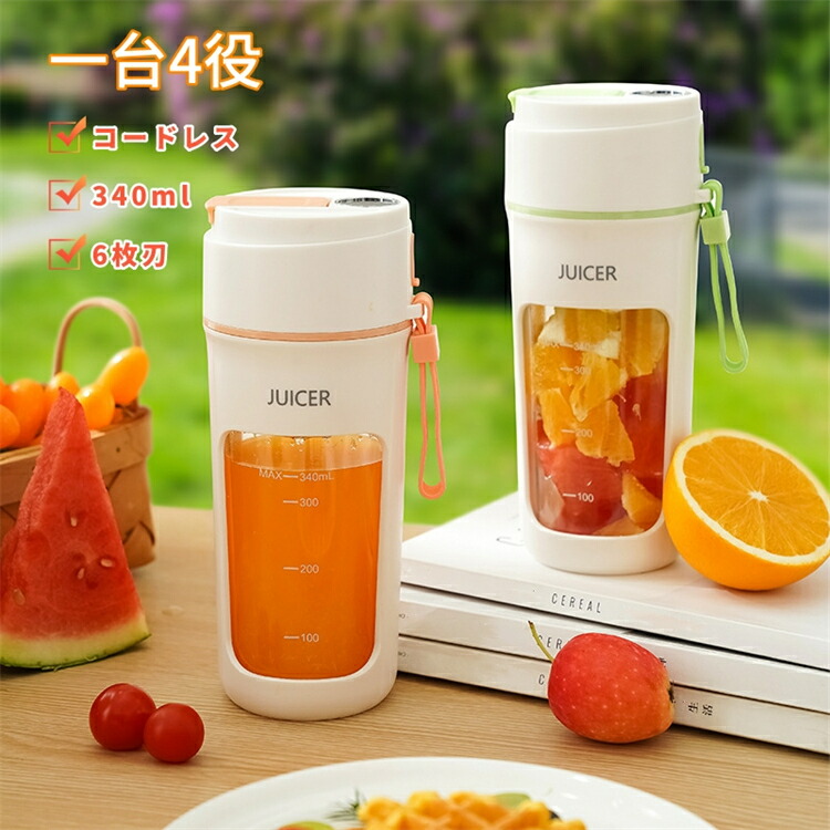 ジューサー ミキサー 小型スムージー 携帯ジューサー 野菜 果物 離乳食用 栄養補充 一台多役 一人用 充電式 お手入れ簡単 22000回転バッテリー 持ち運びやすい Type-C充電ポー 340MLジューサー ミキサー 小型スムージー オレンジ グリーン ピンク