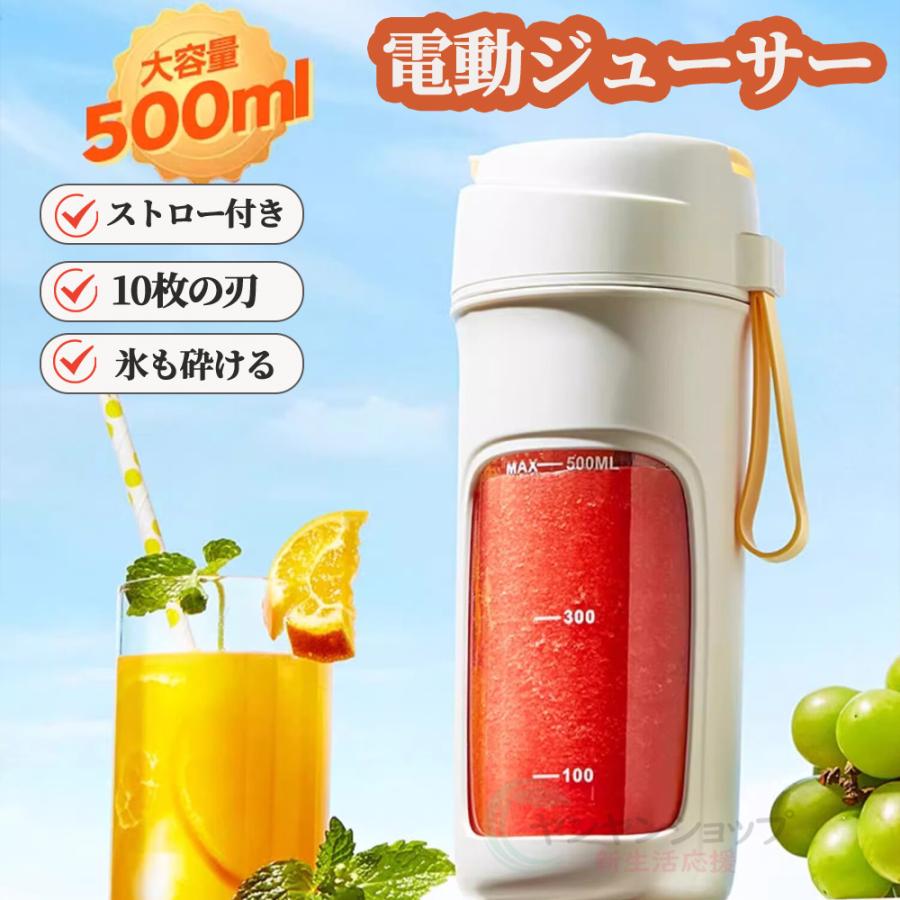 ■ジューサー ミキサー コードレス ジュース 氷も砕ける 小型 軽量 一台多役 充電式 お手入れが簡単 500ML 3000mAh 10枚刃 持ち運び type-c