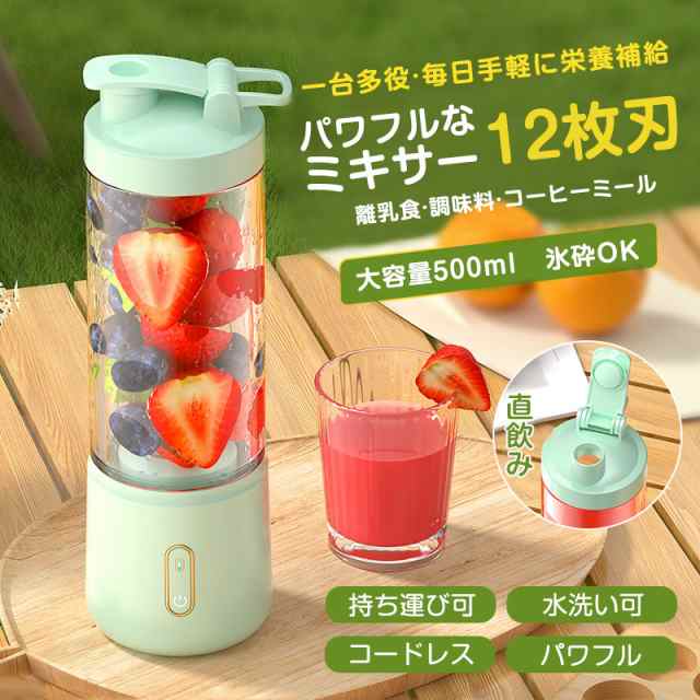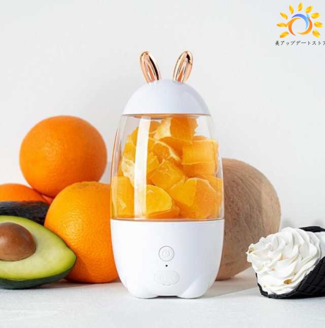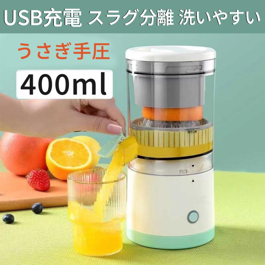 ■ジューサー ミキサー 丸洗い可 うさぎ手圧 400ML 携帯ジューサー お手入れ洗いやすい USB充電式 スロージューサー ミニ 小型 果物 縦型