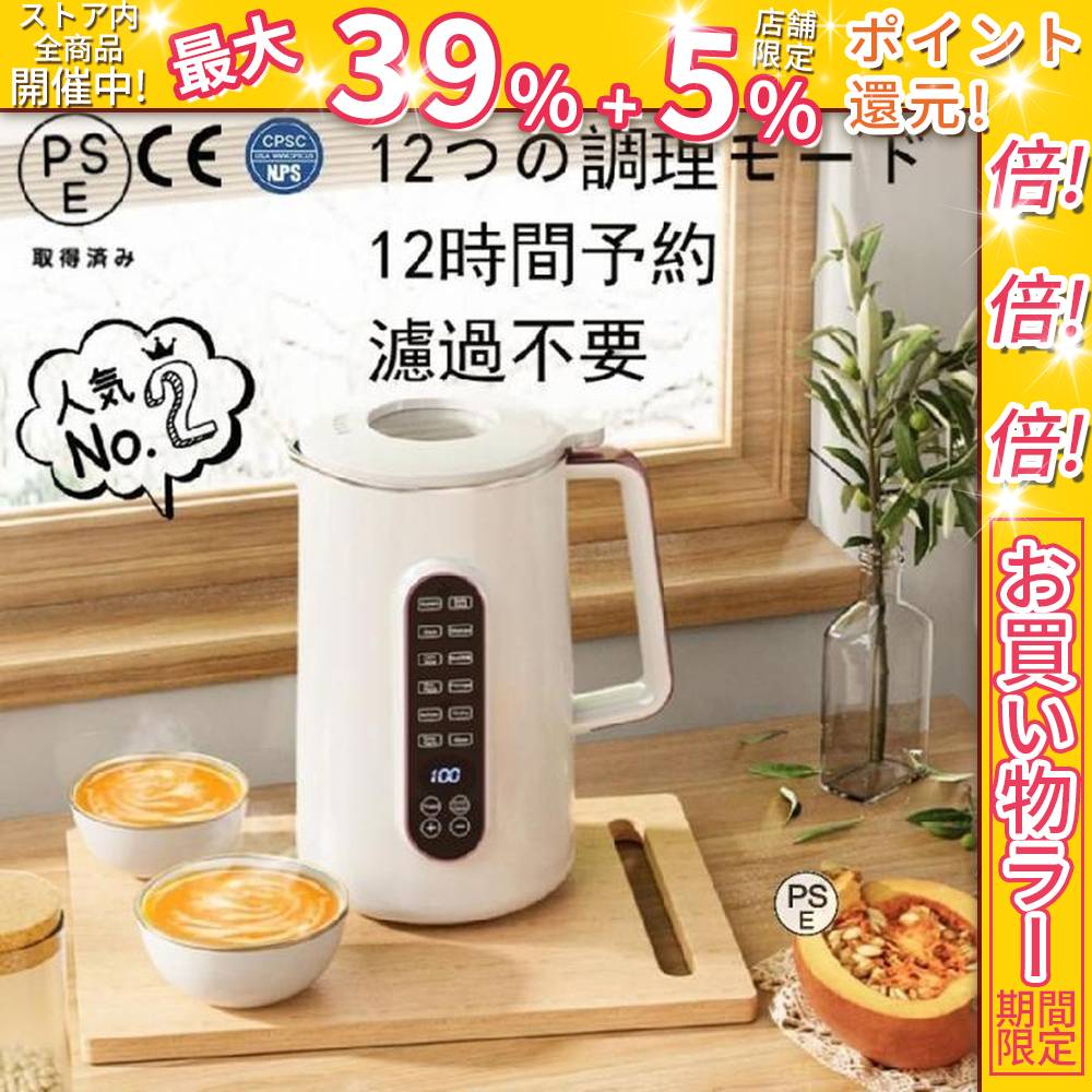 ■【クーポン対象 お買い得】豆乳メーカー「1.2L/1.5L大容量・12つの調理モード」12時間予約 スープ お粥 ジャム 電気ジューサー ミキサー