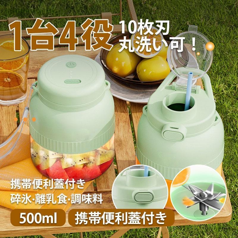 ■ミキサー 1台4役 ジューサー 小型 丸洗い可 500ML コードレス スムージー コードレスミキサー 携帯ジューサー 氷対応 保護機能 USB充電式