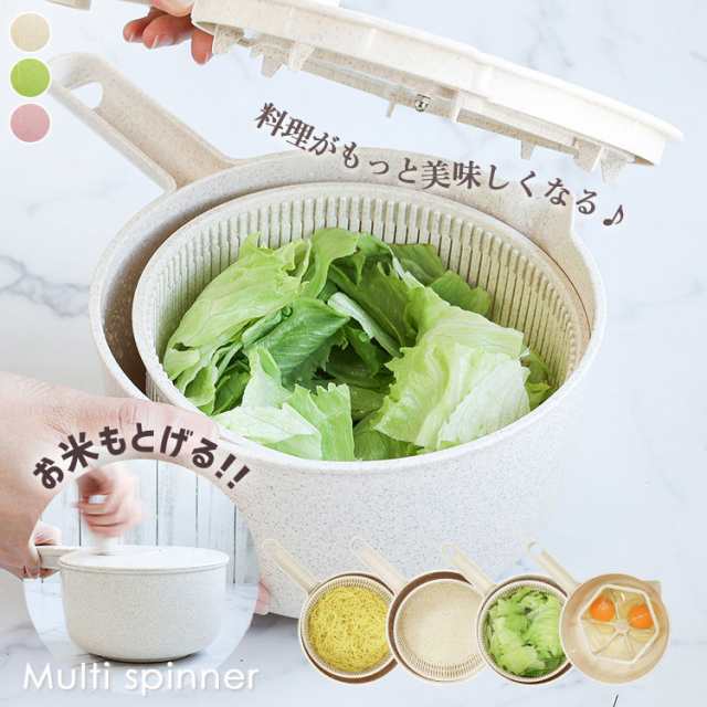 ■お米も研げる!! サラダスピナー 多機能 野菜 水切り 機 カゴ 野菜水切り器 洗米 米とぎ ボウル 攪拌 ミキサー キッチン便利グッズ サラダ