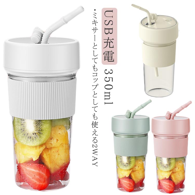■ストロー付き コンパクト 充電式 ポータブルミキサー スムージー 離乳食 ミキサー 350ml 小型 氷も砕ける ボトル ジューサー アウトドア