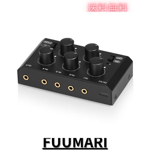 ■Mini ポータブル ステレオ 4チャンネル 3.5mm プロオーディオ ミキサー パッシブ ライブ スタジオ コンソール (XX-MC5-BX)