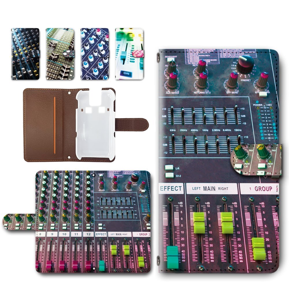 ■キッズケータイ SH-03M ケース 手帳型 カメラ穴あり サウンド ミキサー 宅録 DTM柄 おしゃれ sh03m スマホケース キッズ携帯 ケース 手