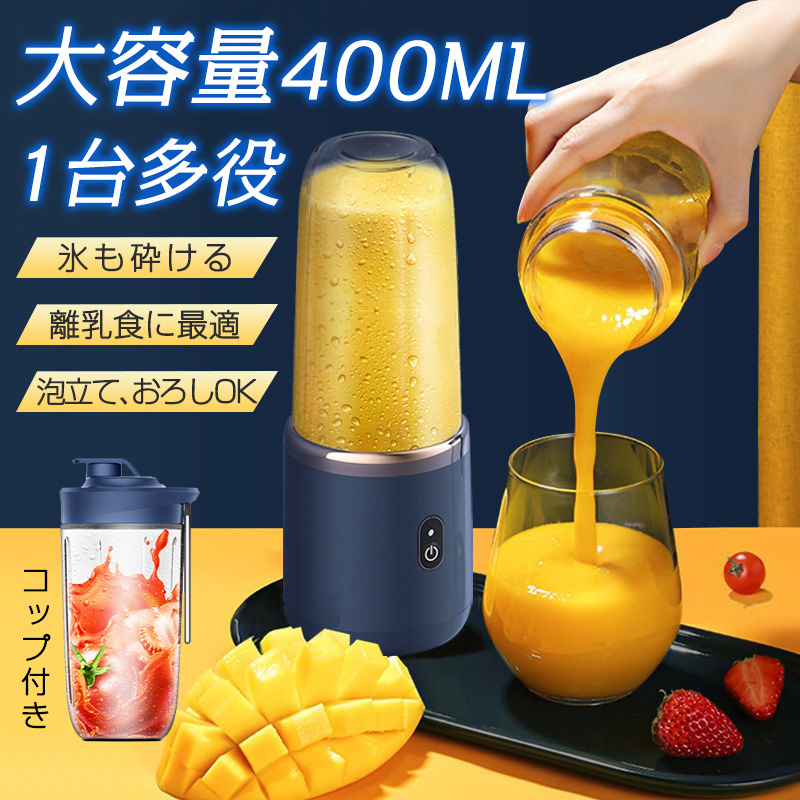 ■ジューサー ミキサー 丸洗い可 400ML コードレス スムージー 氷も砕ける 持ち運び便利 1台多役 洗いやすい USB充電式