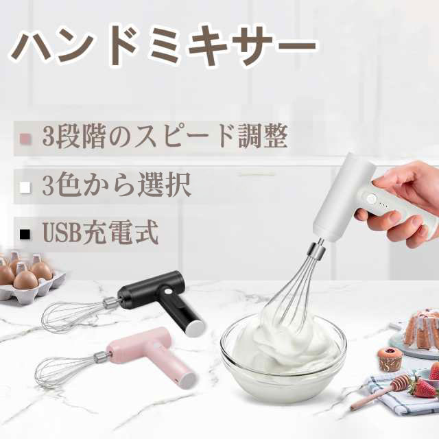 ■ハンドミキサー 小型 泡立て器 電動 コードレス 3段階スピード調節 ミキサー 充電式 キッチン用 コンパクト 速い 軽い 強力 ホイッパー
