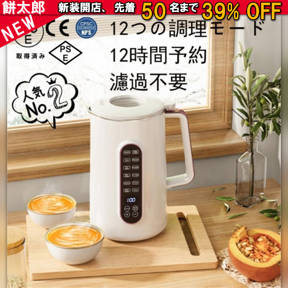 ■豆乳メーカー1.2L/1.5L大容量・12つの調理モード12時間予約 スープ お粥 ジャム 電気ジューサー ミキサー 304ステンレス 濾過不要 小型
