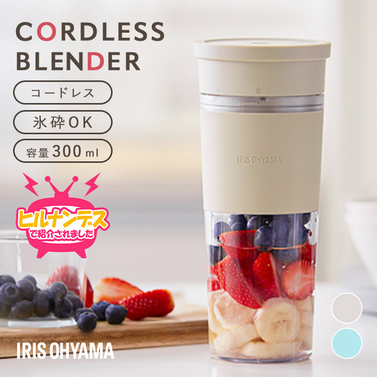 コードレスブレンダー[IBB-C301]コードレスで持ち運びもラクラク、氷使用OK。(※氷は2.5cm角未満。)いつでも手軽に作りたてを味わえる。【USB充電でいつでもどこでも使える】1回のフル充電で約16回使用可能。(※1回35秒使用の場合。)忙しい朝や食材の下ごしらえはもちろん、オフィスやアウトドアにも。いろんなシーンでも楽しめる。●定格電圧DC 7.4V●電源リチウムイオン電池●充電池容量1300m Ah●充電入力DC 5V、1A●充電時間約3時間●回転数約18500回/分●定格時間最大約70秒(2回運転まで)●定格容量300m L●防水性能IPX6●製品寸法(cm)幅約9.1×奥行約9.1×高さ約20.5●製品質量約550g●付属品USBケーブル(Type A-Type C:長さ約1m)※ACアダプターは付属していません。充電時は、DC 5V/1AのPSE適合品を使用してください。 & nl*17777