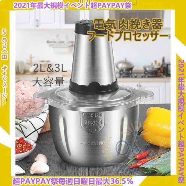 電気肉挽き器 フードプロセッサー フードチョッパー 肉チョッパー 野菜チョッピング みじん切り器 ステンレス鋼 ガラス ミキサー 大容量 2L 3L