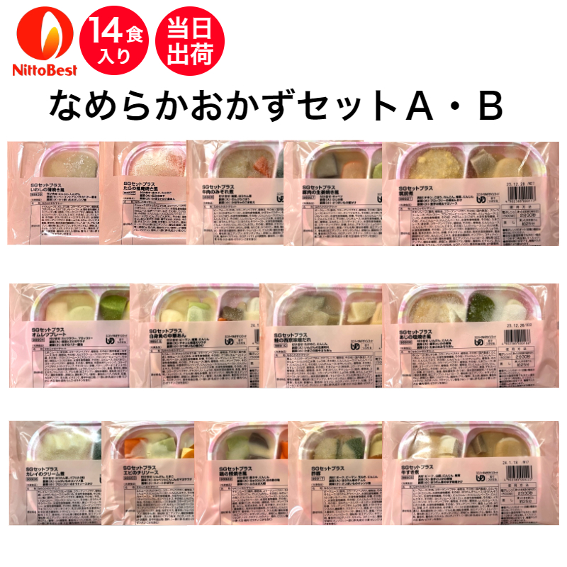 ■【介護食】冷凍 なめらかおかずセットA・B 14食入り 区分3 舌でつぶせる 当日発送 冷凍弁当 冷凍食品 スムースグルメ ムース食 ミキサー