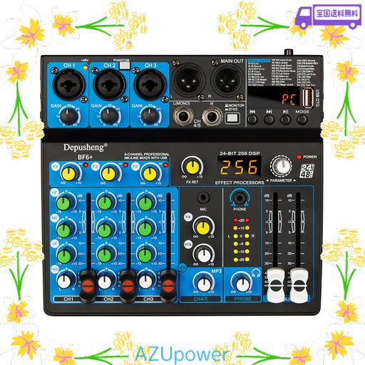 ■DEPUSHENG BF6+ ポータブル ミニ ミキサー 6 チャンネル オーディオ ミキサー DJ コンソール BLUETOOTH 機能、48V ファンタム電源、PC レ