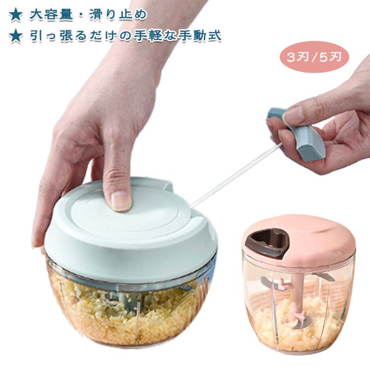 ■手動 みじん切り みじん切り器 チョッパー 大容量 みじん切りカッター フードプロセッサー 野菜スライサー 900ml ミキサー みじん切りカ