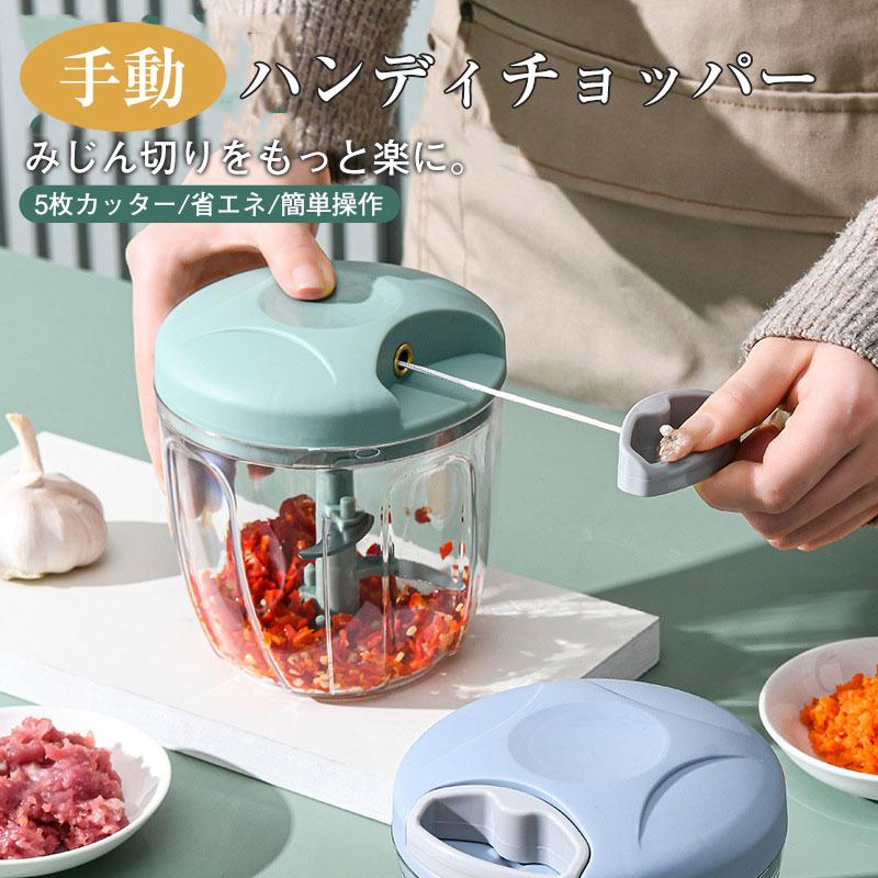 ハンディチョッパー フードチョッパー 5枚カッター みじん切り 手動 ミキサー スライサー 野菜 肉 電源不要 キッチン 大容量 時短 調理器具