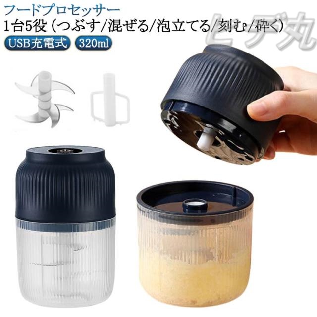 フードプロセッサー 大容量 ミキサー ステンレス6枚刃 電動 電動スライサー 1台5役 フードチョッパー フードプロセッサー 小型 みじん切り器 みじん切りカッター 320ml コードレス にんにく おろし器 大根おろし器 肉挽き 野菜切り