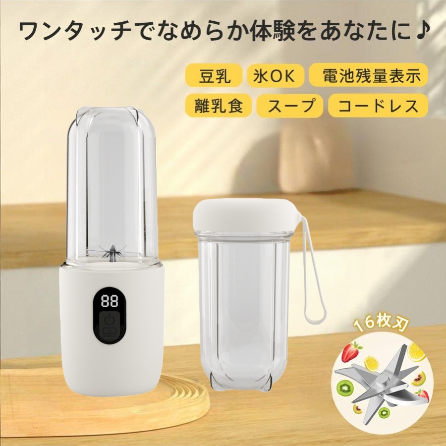 ジューサー ミキサー 500ml コードレス 充電式 16枚刃 スムージー 氷対応 USB充電 電池残量表示 洗いやすい キャップ付き 持ち運び便利 小型 ポータブル ミニブレンダー