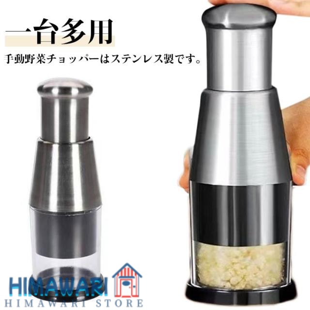 ■手動 フードプロセッサー にんにく潰し 水洗い可能 電源不要 みじん切り器 ステンレス鋼 ミニ 手動フードチョッパー 押し 掃除簡単 野菜