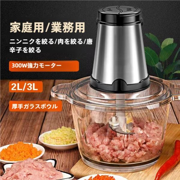 ■フードプロセッサー 1台3役 小型 みじん切り 電動 ミートミンサー ミートチョッパー 家庭用 業務用 粉砕機 家庭用食品 電気 肉挽き器 豆