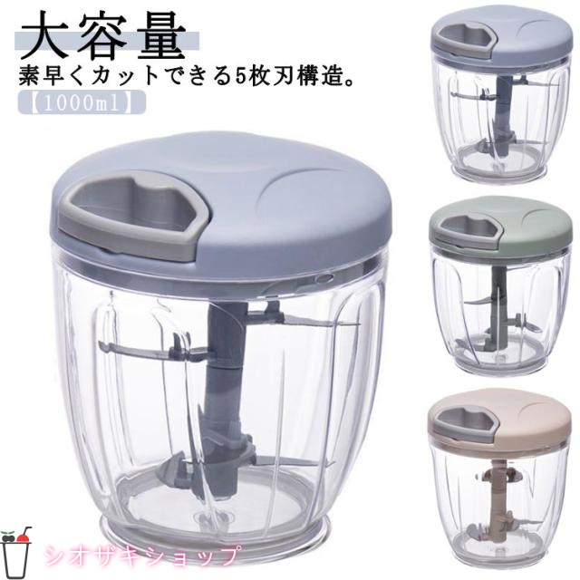 ■チョッパー みじん切り器 手動 1000ml 引っ張る 大容量 切る フードプロセッサー みじん切り 5枚刃 離乳食 フードチョッパー 玉ねぎ にん