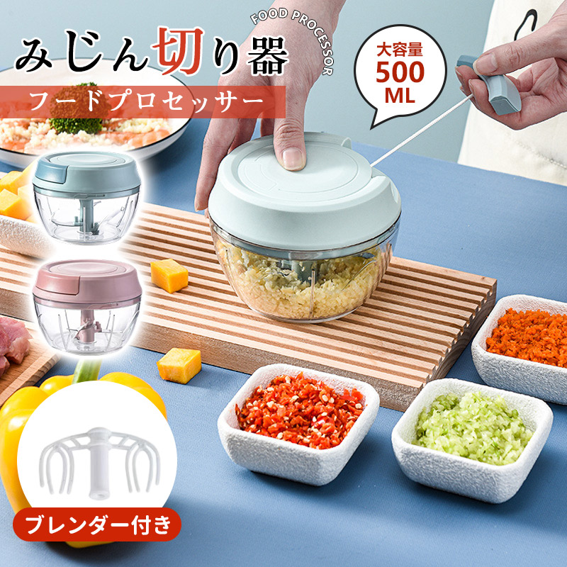 ■切り器 食洗機対応 チョッパー 大容量500ml 料理 洗える みじん切り器 フードプロセッサー フードチョッパー 手動 ブレンダー